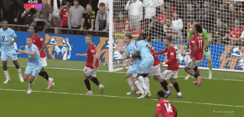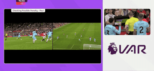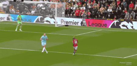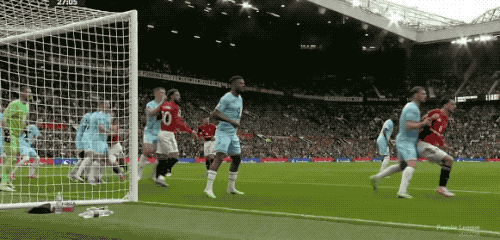 伤停补时阶段,VAR再度介入,进球功臣安东尼拉拽阿玛德的球衣,阿玛德倒在禁区内,裁判回看过后判罚点球。